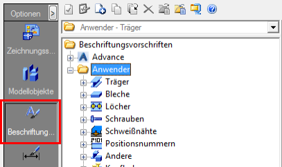 Es ist also erforderlich, Beschriftungen nur für Schubplatten hinzuzufügen, während andere angebaute Bleche in der Baugruppe keine Beschriftung haben. Folgende Konfigurationen des Zeichnungsstils sind sicher: