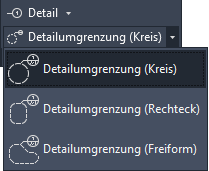| Erstellen vergrößerter Pläne | XZUSCHNEIDEN | Beschriftungen und Projekt-Navigator | Registerkarte Beschriften Gruppe Beschriftungen ![]() Dropdown Detailumgrenzung