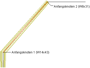 Gehen Sie wie folgt vor, um den ersten Sparren des Starrrahmens zu erstellen, indem Sie dem zweiten Segment des Tragwerks eine unterschiedliche Anfangs- und Endform zuweisen.