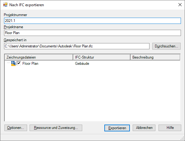 IFC (Industry Foundation Classes). Sie können stattdessen auch in der Befehlszeile ifcexport eingeben.