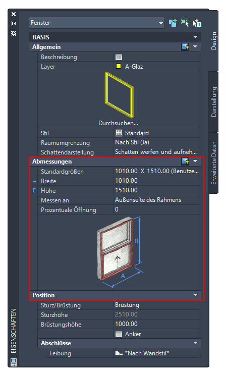 Wie möchten Sie das Fenster bemaßen… | Aktion… |