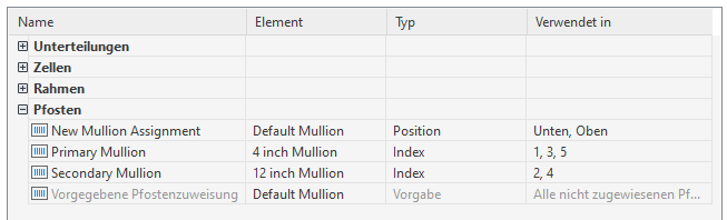 Gehen Sie wie folgt vor, um eine neue Pfostenzuweisung einem Fassadenelementstil hinzuzufügen.