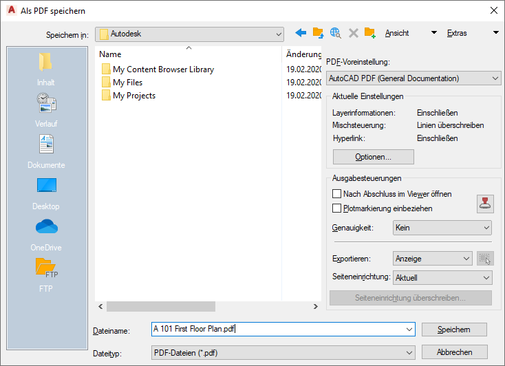 Publizieren von Zeichnungen in PDF