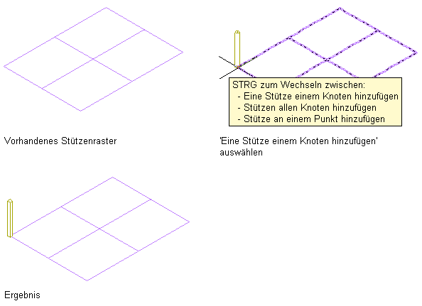 | Hinzufügen einer Stütze an allen Knoten im Raster | Drücken Sie STRG, und klicken Sie. |