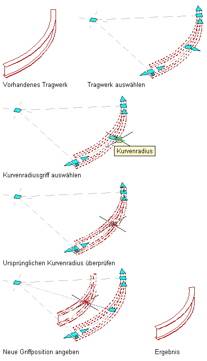 Ändern des Kurvenradius eines gebogenen Unterzugs mit Griffen