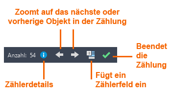 Wenn Sie sich in einer aktiven Zählung befinden, wird der Werkzeugkasten Anzahl oben im Zeichenbereich angezeigt.