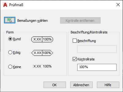 Legt die Form des Rahmens fest, der um Beschriftung, Bemaßungswert und Kontrollrate des Prüfmaßes gezeichnet werden soll.