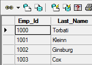 Die Datenanzeige enthält Datensätze aus der ausgewählten Datenbanktabelle. Die Datenanzeige enthält mehrere Schaltflächen, ein Rasterfenster für die Anzeige und Bearbeitung von Datensätzen sowie mehrere Navigationsschaltflächen, mit denen Sie in den Datensätzen navigieren können. Wenn Sie die Datenanzeige öffnen, wird das Menü Datenanzeige zur Menüleiste hinzugefügt. Sie können festlegen, ob das Fenster Datenanzeige fixiert oder verankert werden kann, indem Sie mit der rechten Maustaste auf die Titelleiste klicken und eine Option aus dem Kontextmenü wählen.
