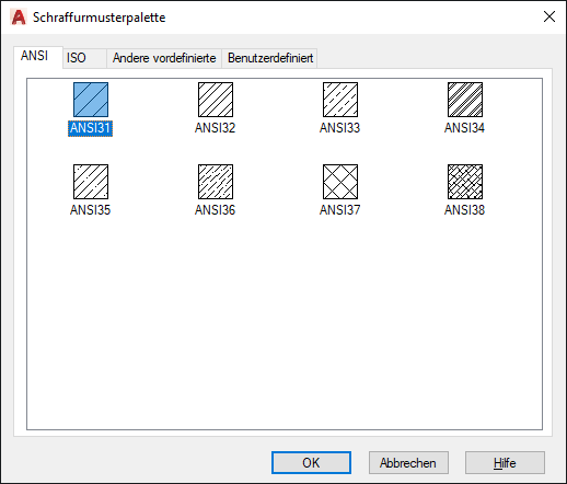 Zeigt alle ANSI-Muster im Lieferumfang des Programms an.
