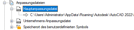 - Navigieren Sie im Explorer zu <Laufwerk>:\Benutzer\<Benutzerprofilname>\AppData\Roaming\Autodesk\<Produktname>\<Versionsnummer>\<Sprache>\support\<Anpassungsdateiname>.cuix.