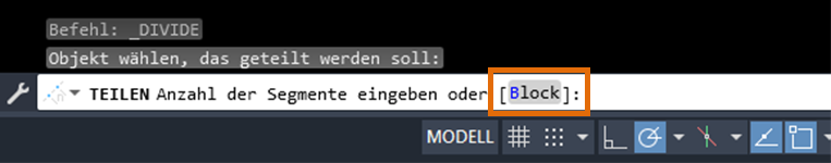 | TEILEN | Erstellt Punktobjekte oder Blöcke in gleichmäßigem Abstand über die Länge oder den Umfang eines Objekts. |
