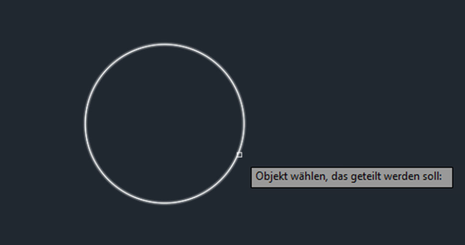 Wir verwenden den Befehl TEILEN erneut, aber dieses Mal teilen wir einen Kreis. Angenommen, Sie möchten einen Kreis in sechs gleiche „Tortenstücke“ teilen, wie hier gezeigt.