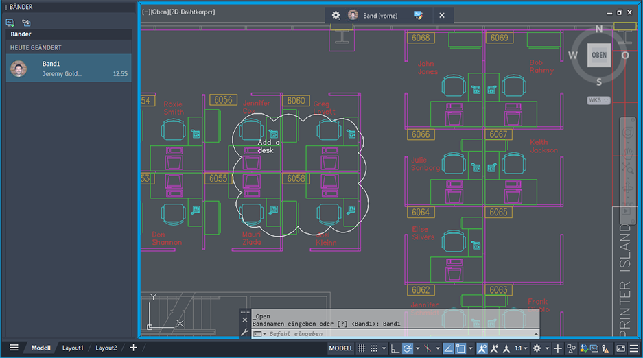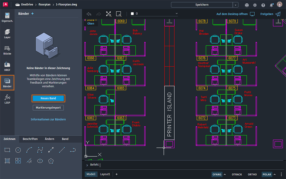 Die Funktion Band ist ab Version 2022 in den AutoCAD-Web- und Mobil-Apps und AutoCAD-basierten Produkten verfügbar. Sie bietet eine Funktion für Zusammenarbeit und Markierung, mit der Sie Änderungen an einer Zeichnung vornehmen können, ohne die vorhandene Zeichnung ändern zu müssen.