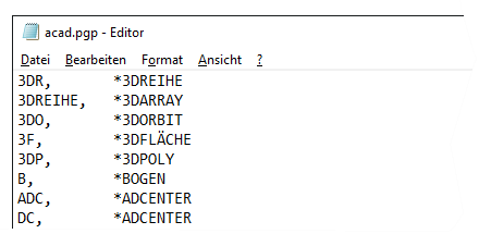 Tipp: Sie können Befehlsaliasse verwenden, um die Zeit zu reduzieren, die zum Starten eines Befehls benötigt wird. Anstatt den Mauszeiger über die Benutzeroberfläche zu bewegen, um einen Befehl zu finden, kann der Mauszeiger im Zeichenbereich bleiben und ist für die Eingabe bereit. Ein Befehlsalias ist ein gekürzter Name für einen Befehl; oft besteht dieser nur aus ein oder zwei Buchstaben. Die Auto-Vervollständigung-Vorschlagsliste zeigt Befehlsaliasse einschließlich des zu startenden Befehls in Klammern an. Eine vollständige Liste aller Befehlsaliasse finden Sie unter Registerkarte Verwalten > Gruppe Anpassung > Aliasse bearbeiten > Aliasse bearbeiten. Sie können diese Liste anzeigen oder drucken.