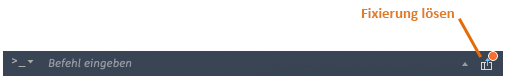 Die Fixierung des Befehlsfensters kann aufgehoben werden. Ein nicht fixiertes bzw. verschiebbares Befehlsfenster kann auf dem Bildschirm durch Ziehen am linken oder rechten Ende neu positioniert werden.