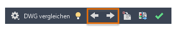Der Werkzeugkasten DWG vergleichen wird geöffnet, und die Vergleichsergebnisse werden in der aktuellen Zeichnung angezeigt. Dieser Werkzeugkasten enthält eine Reihe von Befehlen und Optionen für die Überprüfung und Steuerung des Vergleichsergebnisses.