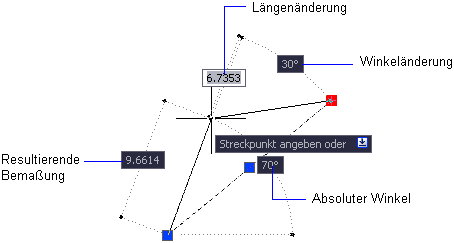 Wenn Sie zum Bearbeiten eines Objekts Griffe verwenden, können in den QuickInfos für die Bemaßungseingabe die folgenden Informationen angezeigt werden: