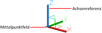Um 3D-Objekte und Unterobjekte zu verschieben, klicken und ziehen Sie das 3D-Gizmo an eine beliebigen Position im 3D-Raum. Durch diese Position (die durch das mittlere Feld oder den Basisgriff, des Gizmos angegeben wird) wird der Basispunkt für das Verschieben festgelegt und wird die Position des BKS vorübergehend geändert, während Sie die ausgewählten Objekte verschieben.