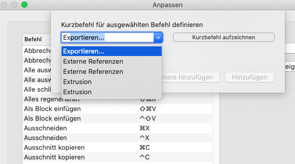 Erstellen oder ändern Sie Tastaturkürzel für Befehle.