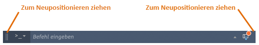 Die Fixierung des Befehlsfensters kann aufgehoben werden. Ein nicht fixiertes bzw. verschiebbares Befehlsfenster kann auf dem Bildschirm durch Ziehen am linken oder rechten Ende neu positioniert werden.