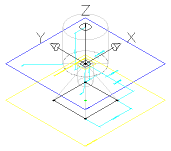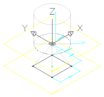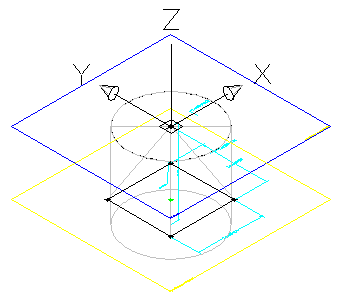 - Wählen Sie an der Befehlszeile die XY-Ebene des Zylinders