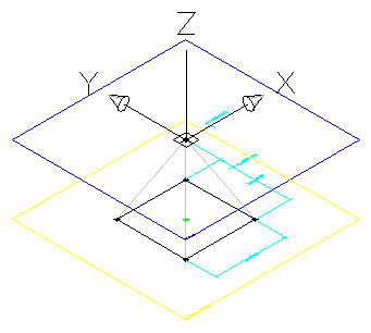 Der Pyramiden-Grundkörper hat zwei Arbeitsebenen: eine an der Spitze der Pyramide und eine an der Grundfläche. Dies richtet die Ebene an der Spitze der Pyramide mit der XY-Ebene am Durchlass aus.