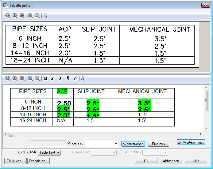 Konvertieren von Rastertext aus einer Tabelle in AutoCAD-Text