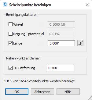 In Abbildung 16 ist das Dialogfeld für die Konfiguration des Bereinigungsvorgangs dargestellt. Hier können Sie die anzuwendenden Bereinigungsfaktoren angeben, numerische Werte anpassen und sich die Ergebnisse anzeigen lassen, bevor Sie die Konfiguration zuweisen. Klicken Sie in diesem Dialogfeld auf die Schaltfläche Hilfe, und rufen Sie das Hilfethema zur Bereinigung auf, um mehr darüber zu erfahren, wie Sie mit diesen Steuerelementen die besten Ergebnisse erzielen können.