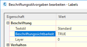 Abbildung 3: Deaktivieren der Beschriftungssichtbarkeit für ein Objekt