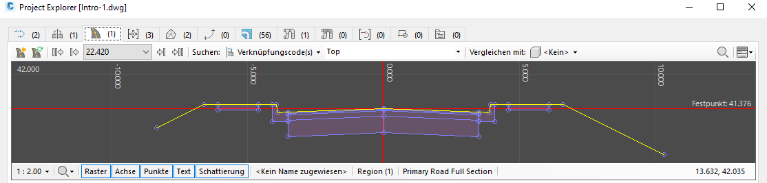 Querschnittsansicht: Zeigen Sie ein Querprofil eines beliebigen Querschnitts in der Zeichnung an, identifizieren Sie problemlos einzelne Querschnittsbestandteile, und bearbeiten Sie direkt die Parameter für den Querschnittsbestandteil.