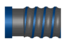Anmerkung: Für ein Gewindefeature, das mit einem perfekt der Gewindeform entsprechenden Werkzeug geschnitten wird, sollten Sie ein Aus Abmessungen erstelltes Standardgewinde verwenden. Die Simulation zeigt nicht den korrekten Gewindequerschnitt, die generierten Werkzeugwege sind aber korrekt.