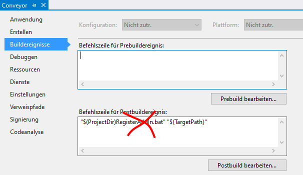 Wichtig: Deaktivieren Sie die Option Update bin directory on save.