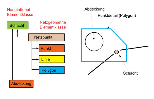 Ein Netzpunkt kann zugehörige Geometrie in der Zeichnung haben. Nur der Schacht ist Bestandteil der Netztopologie.