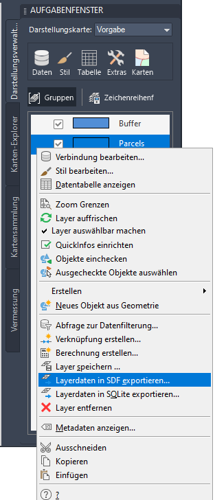 2. Klicken Sie auf Layerdaten in SDF exportieren.