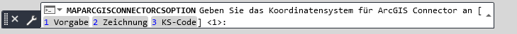 Mit dem Befehl MAPARCGISCONNECTORCSOPTION können Sie das Koordinatensystem angeben, das beim Importieren von Daten aus ArcGIS verwendet werden soll.