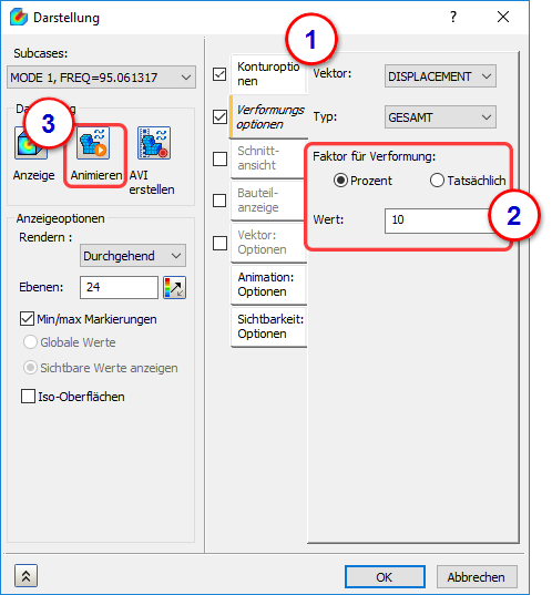 8. Überprüfen Sie die Modusformen bei den einzelnen Frequenzen