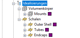 Zur Überprüfung Ihrer Arbeit sollten Sie in der Baugruppenstruktur vier Eigenschaften sehen: