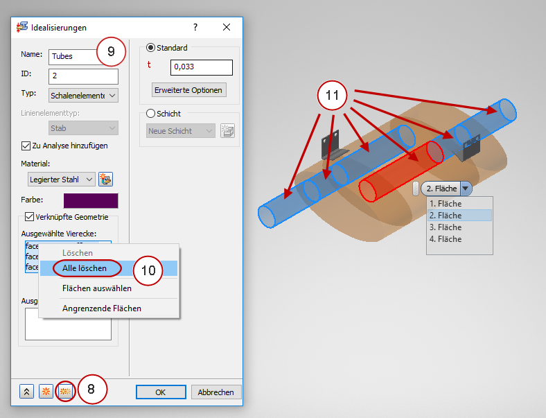- Klicken Sie mit der rechten Maustaste in das Feld Sekundäres Objekt und wählen Sie Alle löschen. Wählen Sie die beiden angrenzenden Flächen des Schalldämpfers.