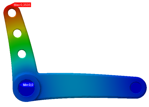 In der vierten Übung haben wir de Abhängigkeiten durch die tatsächlichen Stifte ersetzt, Symmetrie zur Beschränkung der Starrkörperbewegung eingesetzt und die Interaktion und Bewegung zwischen Hebelarm und Stiften mithilfe von Kontakten modelliert. Mit dieser Kombination von Techniken haben wir ein physikalisch höchst realistisches Analyseszenario erstellt und die resultierende Verformung ermittelt: