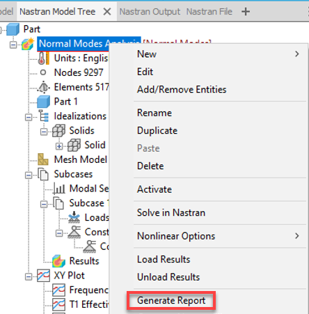 Klicken Sie in der Strukturansicht mit der rechten Maustaste auf den Namen der Analyse, Normalmodusanalyse, und wählen Sie Bericht erstellen.
