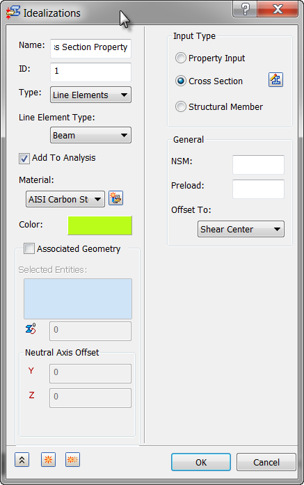 - Wählen Sie im Gruppenfeld Eingabetyp das Optionsfeld Querschnitt, und klicken Sie auf die Schaltfläche