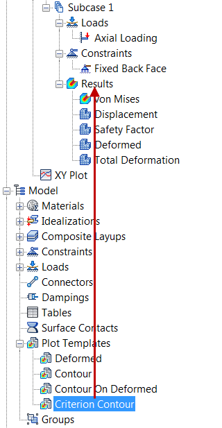 Die Vorlage wird unten im Bereich Ergebnisse unter Subcase 1 platziert.