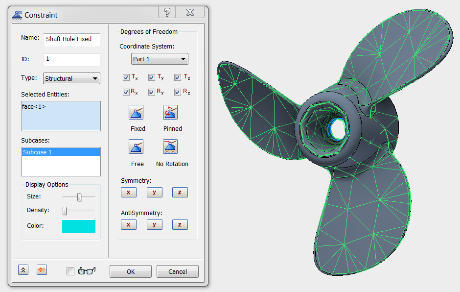 Standardmäßig ist die Abhängigkeit auf Fest eingestellt (die Abhängigkeit gilt für alle sechs Freiheitsgrade der Knoten auf der ausgewählten Oberfläche).