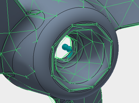 Richten Sie das Modell in Inventor Nastran so aus, dass Sie die kleinere Oberfläche der Zentrierbohrung gut sehen und auswählen können.