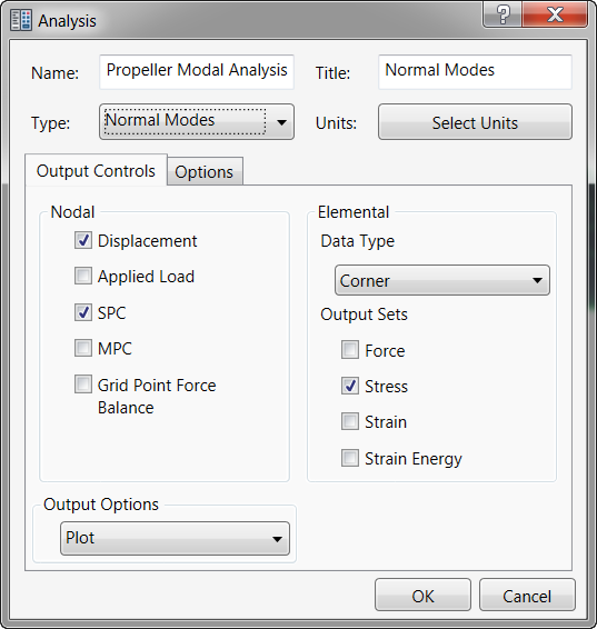 Geben Sie Propeller Modal Analysis als Name und Normal Modes als Titel ein. Wählen Sie Normale Modi im Dropdown-Menü Typ.