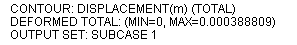 - Die zweite Zeile enthält Details zum Verformungsvektor. In diesem Fall ist es die Gesamtverformung (maximal ca. 0.0004 m).