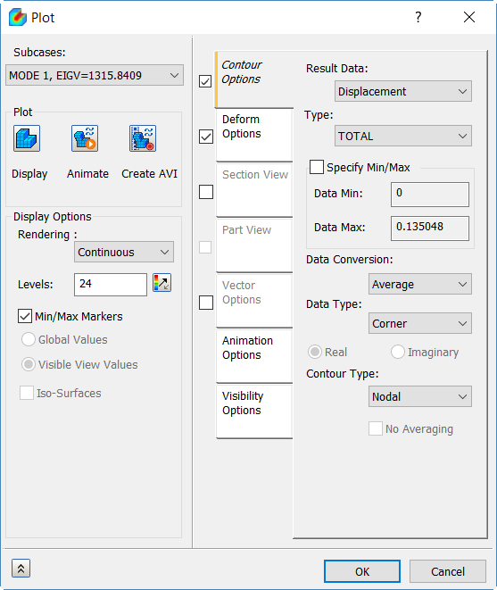 - Überprüfen Sie Verformungsoptionen und unter Darstellung klicken Sie auf Anzeigen. Die Darstellung sollte der folgenden Abbildung entsprechen.