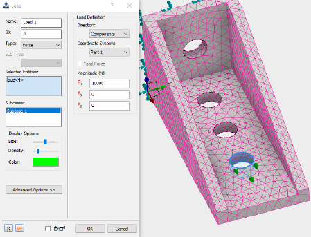 strCmdForLoad = "<Load Name=""Load 1"" ID=""1"" Type=""0"" SubType=""0"" EntitiesCount=""1"" Subcases=""1"" ArrowLength=""50"" ArrowColor=""65280"" DisplayDensity=""4"" Direction=""0"" CoordinateSystemID=""0"" Display=""1"" Fx=""10000.0000000000[N]"" Fy=""0.0000000000[N]"" Fz=""0.0000000000[N]"" HasVariableLoad=""0"" HasHeatGenTable=""0"" HadConvCoeffTable=""0"" HasRadTable=""0"" HasTransTable=""0"" HasVelTransTable=""0"" HasAccTransTable=""0"" HasVelFreqTable=""0"" HasAccFreqTable=""0"" HasFreqTable=""0"" HasFreqPhaseTable=""0"" HasAccFreqPhaseTable=""0""><Entity1 GeometryType=""2"" GeometryID=""4"" ComponentName=""Tutorial 1""/></Load>"