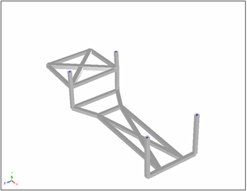 Dieses Lernprogramm veranschaulicht eine lineare statische Analyse eines Anhängergestells mit Stab- und Balkenelementen.
