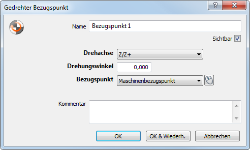 - Geben Sie den Drehungswinkel für den Bezugspunkt ein.